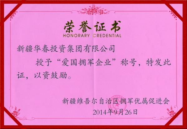 新疆華春投資集團獲評自治區愛國擁軍企業