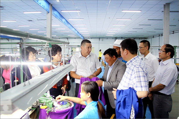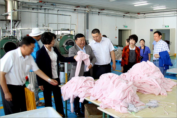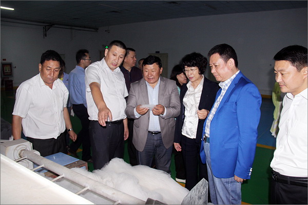 策文繞登省長一行對華春集團下屬的子公司華春毛紡工業(yè)園進行了考察,在參觀了以現(xiàn)代化設備加工生產(chǎn)高檔羊絨制品的全過程后,與華春集團就羊絨原料的戰(zhàn)略采購合作進行了詳細全面的洽談。李成功總裁向策文繞登省長一行介紹了華春毛紡產(chǎn)業(yè)今后發(fā)展的總體戰(zhàn)略規(guī)劃、華春毛紡工業(yè)園一期每年的生產(chǎn)原料所需量和產(chǎn)品出口及品牌建設目標等情況,希望在中國建設絲綢之路經(jīng)濟帶的重大歷史機遇下,共享新絲綢之路經(jīng)濟帶構想帶來的互惠互利。策文繞登省長介紹了蒙古國科布多省畜牧業(yè)羊絨生產(chǎn)的基本狀況。他表示,希望與華春集團建立長期的羊絨供貨合作關系,以帶動蒙古國科布多省畜牧業(yè)的發(fā)展。
