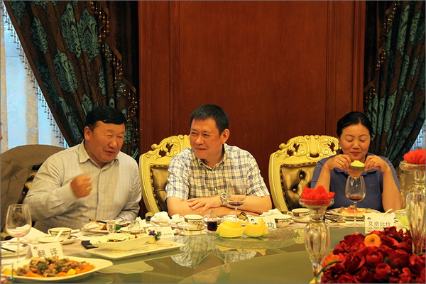8月15日,在兵團五家渠師市領導的陪同下,蒙古國科布多省省長策文繞登率領的代表團一行,前來新疆華春投資集團進行參觀交流,并商談戰(zhàn)略合作。華春集團董事局主席兼總裁李成功先生與集團高管人員李榮桂、高青及華春毛紡相關管理人員參加了座談。
