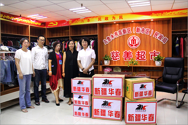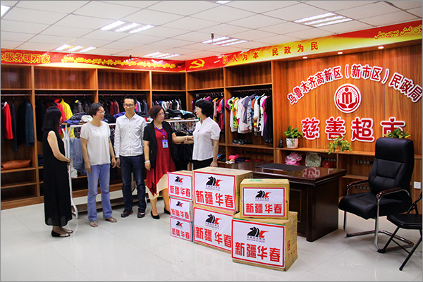 在新疆日漸臨近的寒冷氣候到來之前,新疆華春投資集團(tuán)副總裁兼工會(huì)主席高青攜企業(yè)文化中心管理人員一行,代表華春團(tuán)隊(duì)于8月18日將裝滿7箱的羽絨服、毛衣、風(fēng)衣等衣物,送到烏魯木齊高新區(qū)(新市區(qū))慈善超市,由其送與需要救助的社會(huì)困難群眾、弱勢(shì)群體手中,使他們感受到社會(huì)的溫曖。高新區(qū)(新市區(qū))民政局辦公室武主任和慈善超市的工作人員,對(duì)華春集團(tuán)關(guān)注民生奉獻(xiàn)愛心的善舉表示誠(chéng)摯的感謝。