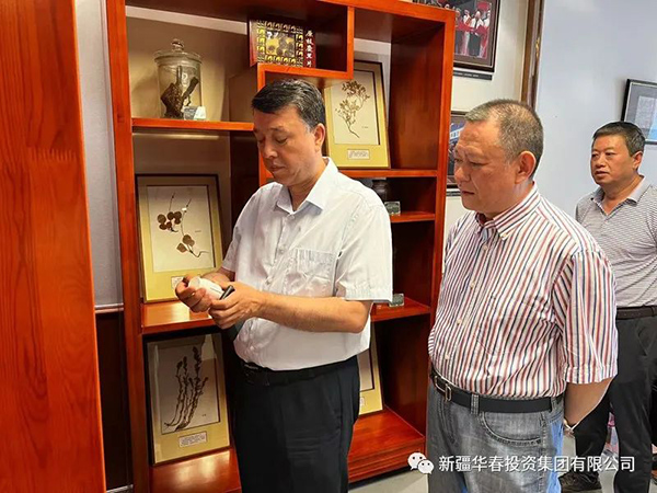 阿布力米提·伊力廳長一行首先參觀了華春企業(yè)文化中心,了解華春集團產(chǎn)業(yè)板塊和企業(yè)在新疆28年來的發(fā)展歷程、中藥創(chuàng)新藥領(lǐng)域科研成果。