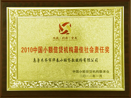 獲得“2010中國小額信貸機構尚佳社會責任獎”的小貸機構,均要求對中國小額信貸行業(yè)有突出貢獻,具備良好發(fā)展?jié)摿Α①J款額達到相當規(guī)模、利潤保持持續(xù)較高增長,在推動小額信貸行業(yè)規(guī)范、持續(xù)發(fā)展上成績顯著,在小貸領域有廣泛的知名度。華春小貸作為新疆小貸領域的杰出代表,一舉獲得2項殊榮。