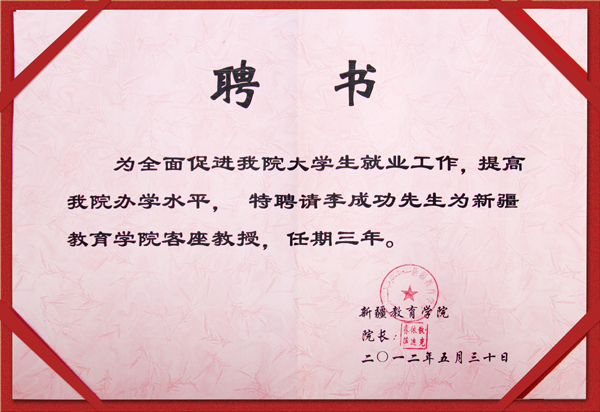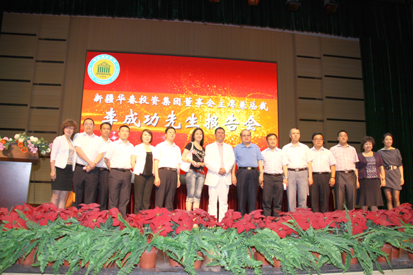 2012年5月30日下午,新疆教育學(xué)院學(xué)術(shù)報(bào)告廳座無(wú)虛席,新疆華春投資集團(tuán)有限公司董事局主席兼總裁李成功先生“客座教授”受聘儀式暨報(bào)告會(huì)在這里隆重舉行。該院的主要領(lǐng)導(dǎo)與數(shù)百名應(yīng)屆畢業(yè)生參加了報(bào)告會(huì),新疆華春投資集團(tuán)的董事王春容女士和集團(tuán)人力資源、行政、企劃、培訓(xùn)、工會(huì)、黨委等部門(mén)的負(fù)責(zé)人參加了此次活動(dòng)。