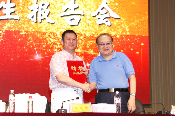 李成功總裁被新疆教育學(xué)院聘為客座教授,新疆教育學(xué)院黨委副書(shū)記閆科培為李總裁頒發(fā)了聘書(shū)。參加報(bào)告會(huì)的學(xué)生為李總裁佩戴了新疆教育學(xué)院精致的校徽。