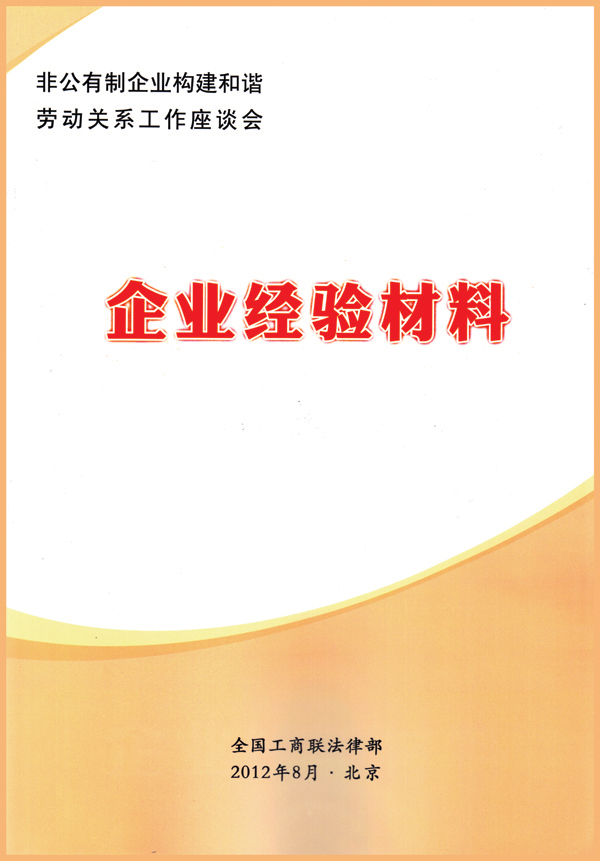 今年8月,華春集團與華春工會的先進事跡收入了由全國工商聯(lián)主辦的非公企業(yè)構(gòu)建和諧勞動關(guān)系工作座談會企業(yè)經(jīng)驗材料匯編之中。