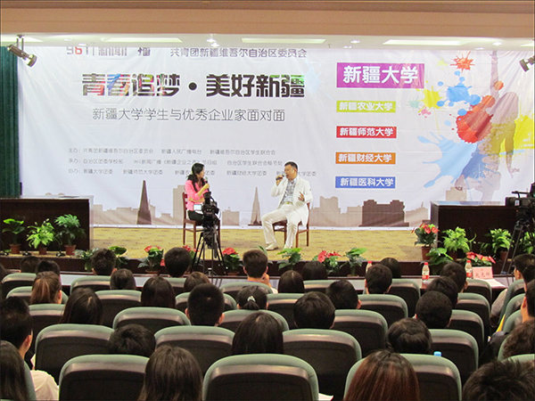 由自治區(qū)團委和新疆人民廣播電臺聯(lián)合主辦的“青春追夢•美好新疆——新疆大學(xué)學(xué)生與優(yōu)秀企業(yè)家面對面”活動,于6月5日在新疆大學(xué)隆重舉行,特邀請自治區(qū)政協(xié)常委、工商聯(lián)副會長、新疆華春集團董事局主席兼總裁李成功先生主講。新疆大學(xué)各學(xué)院老師、學(xué)生代表等約350余人參加此次活動。