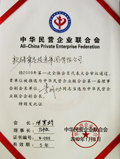 中華民營(yíng)企業(yè)聯(lián)合會(huì)聘書(shū)